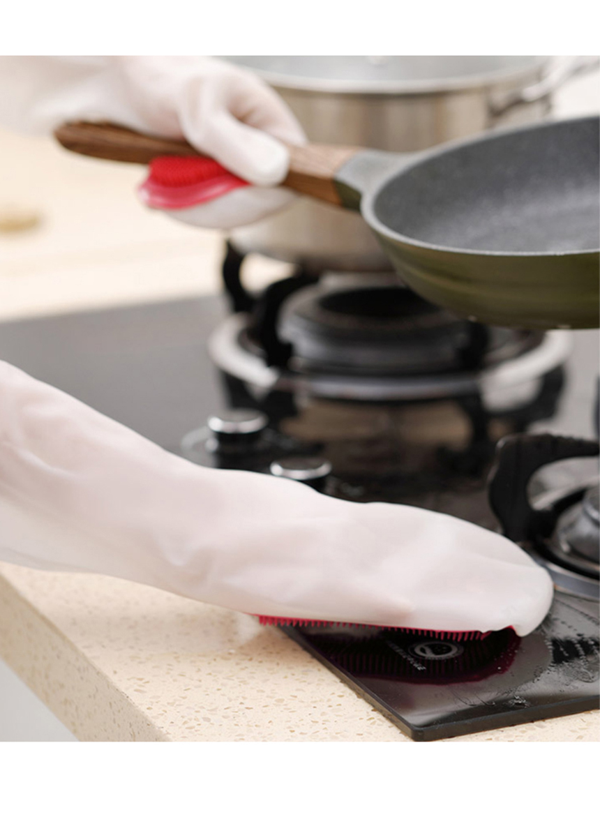 [ 주방 욕실 일체형 수세미 브러쉬 설거지 고무 장갑 1+1 ]