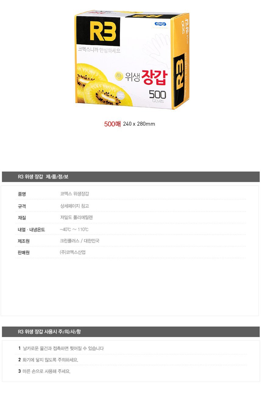 코멕스 R3 위생장갑 500매 비닐장갑 일회용장갑