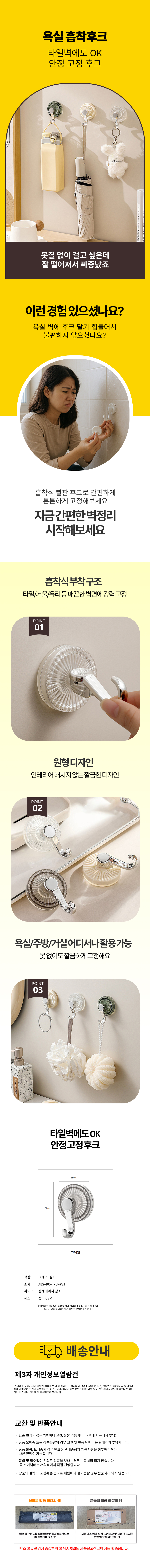 흡착식 빨판 후크 유리 타일벽 원형 욕실 수건 걸이