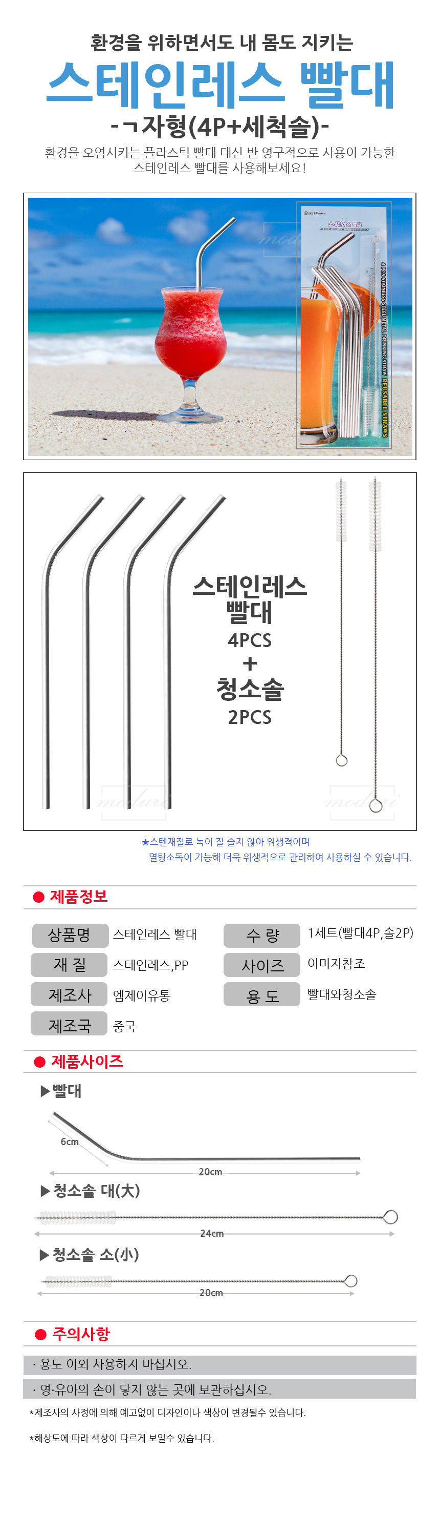 스텐레스 ㄱ자빨대 4p 세척솔 2p 스트로