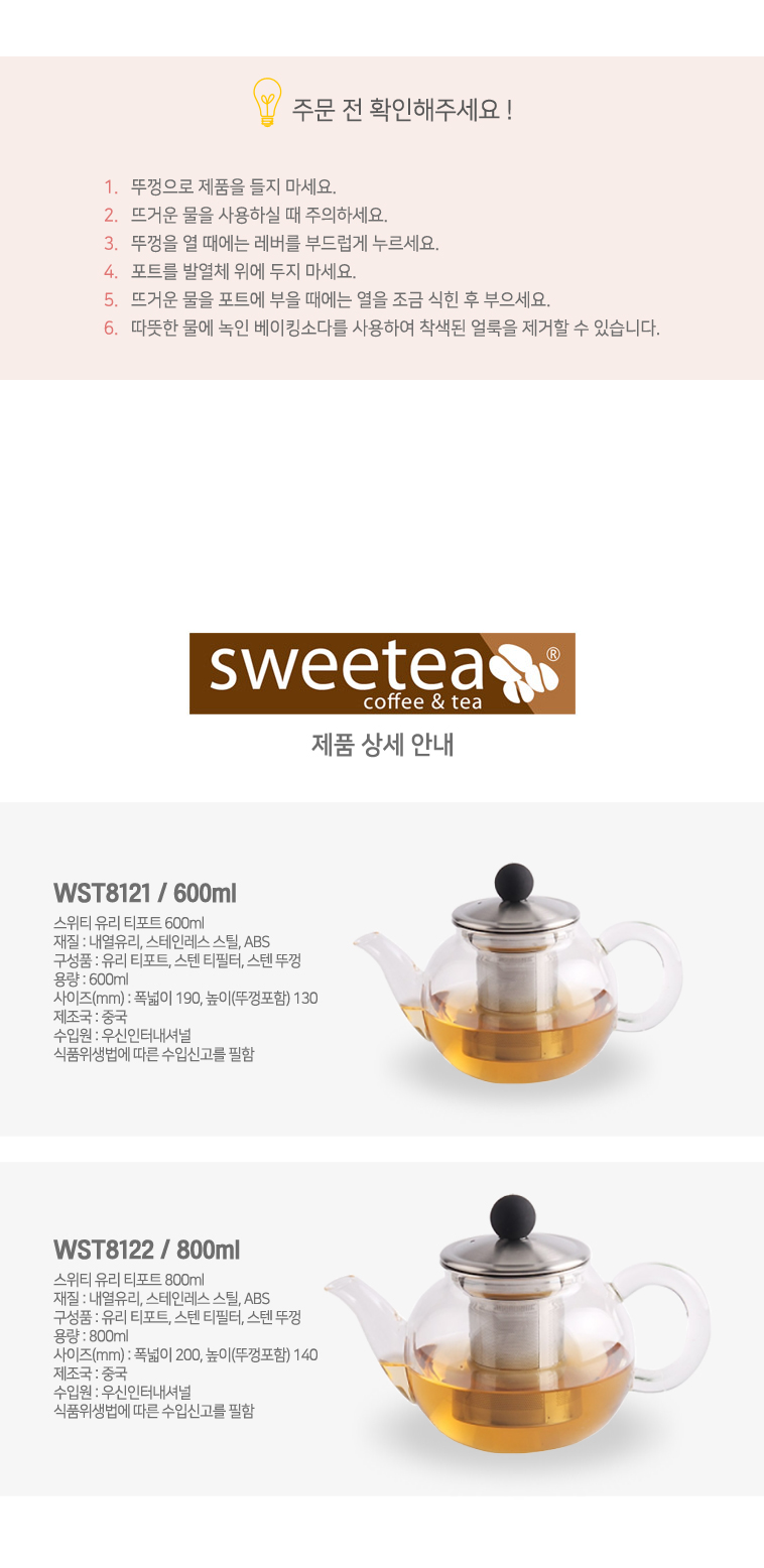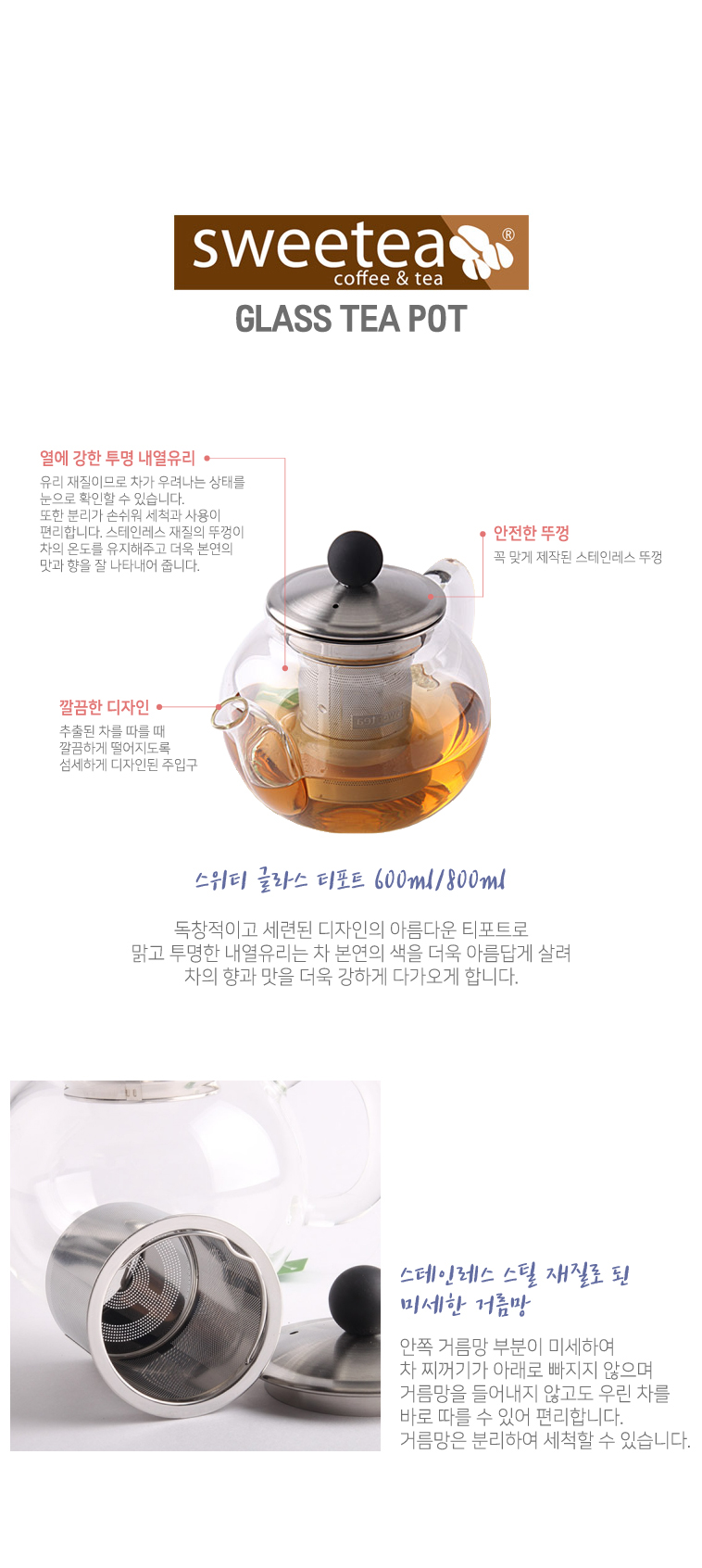 내열유리주전자 차거름망 스위티 글라스 티포트 800ml