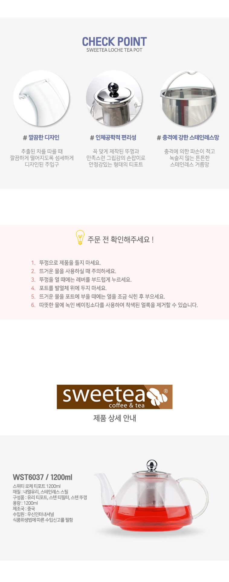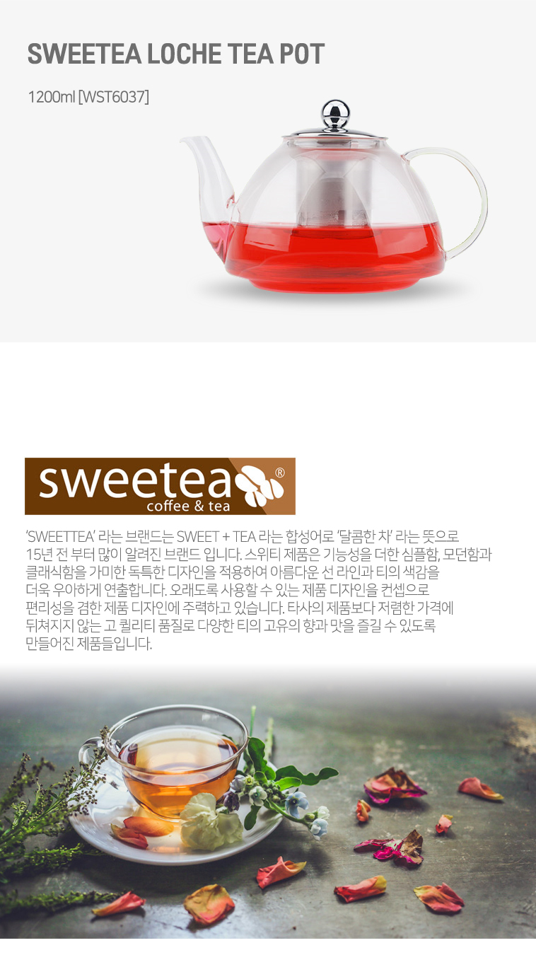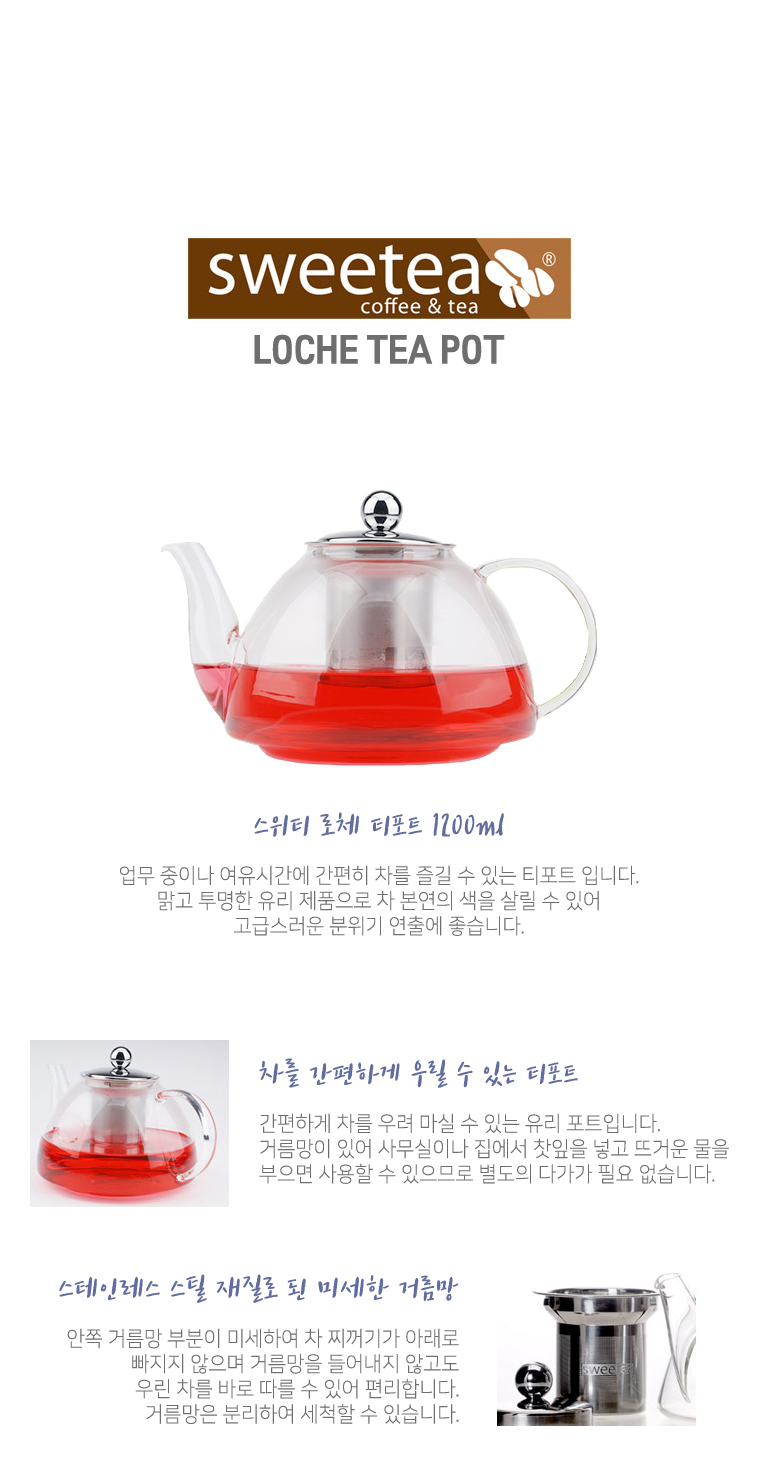 내열유리주전자 차거름망 스위티 로체 티포트 1200ml