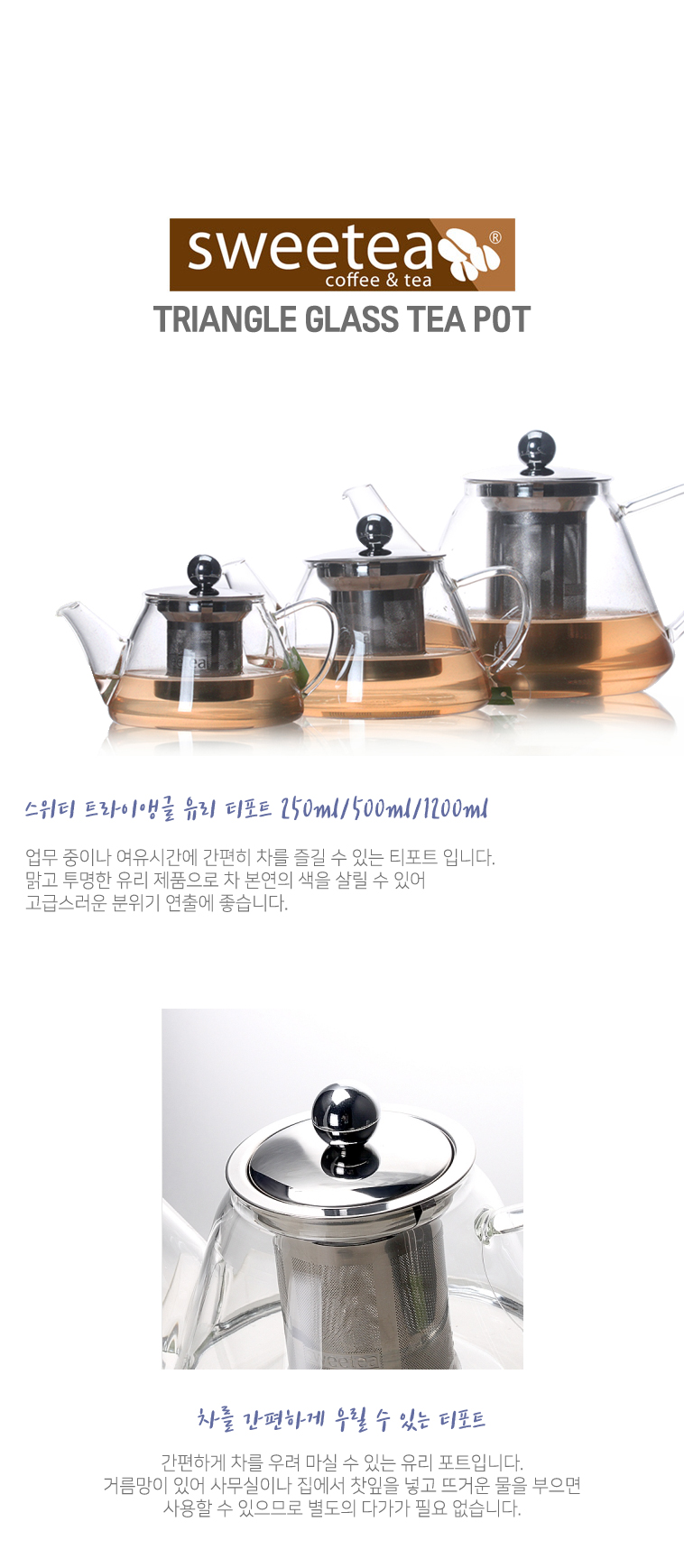 내열유리주전자 차거름망 스위티 트라이앵글 글라스 티포트 1200ml