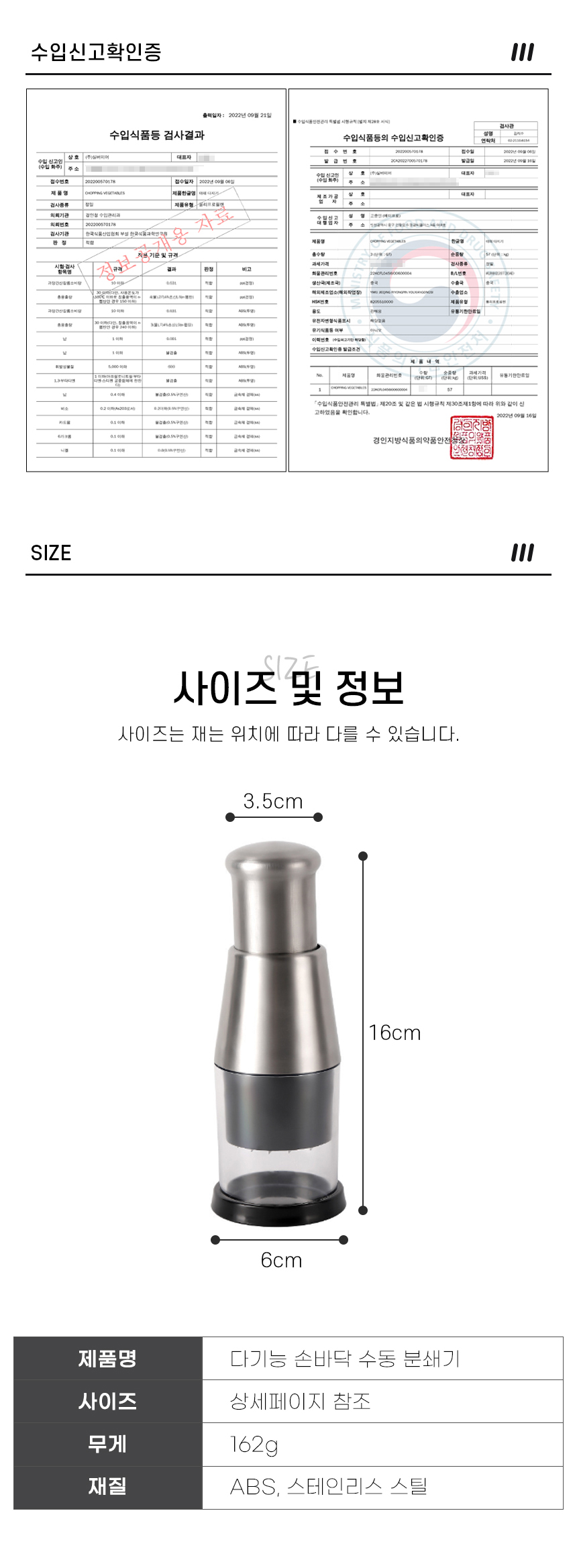 다기능 수동 야채다지기 이유식