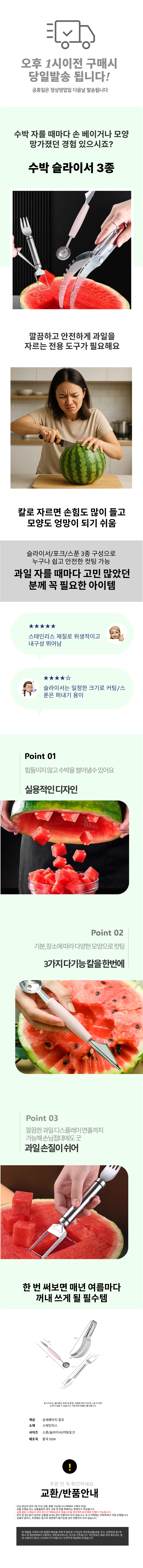 칼 커팅포크 스푼 3종 과일 자르는 수박 멜론 빙수용