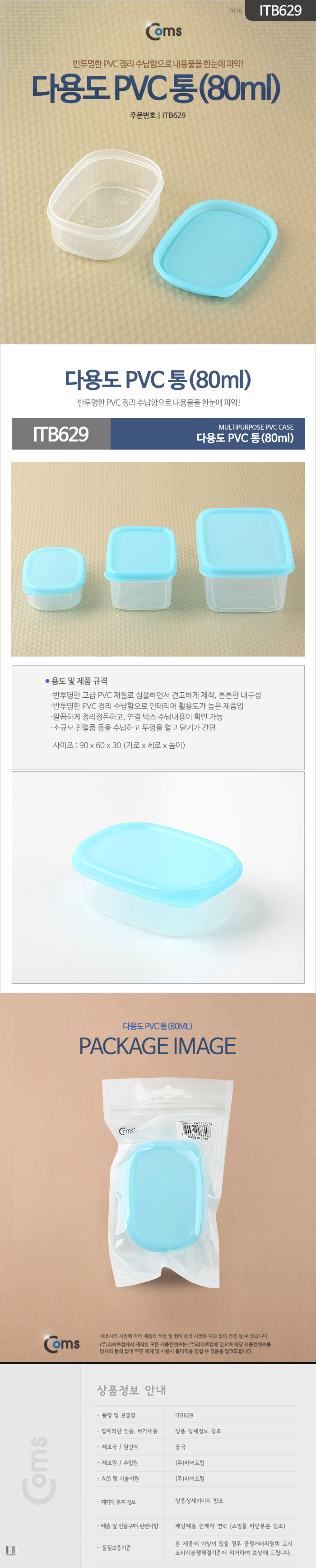 다용도 PVC 통/80ml용량 /반투명 TB629