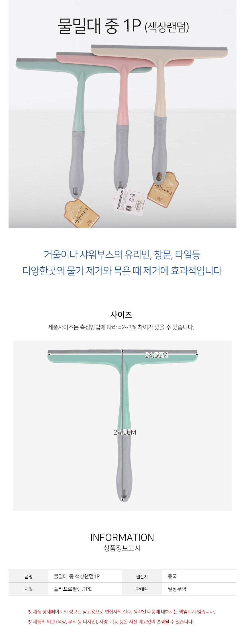 물밀대 중 색상랜덤1P 욕실타일 거울 싱크대 물제거