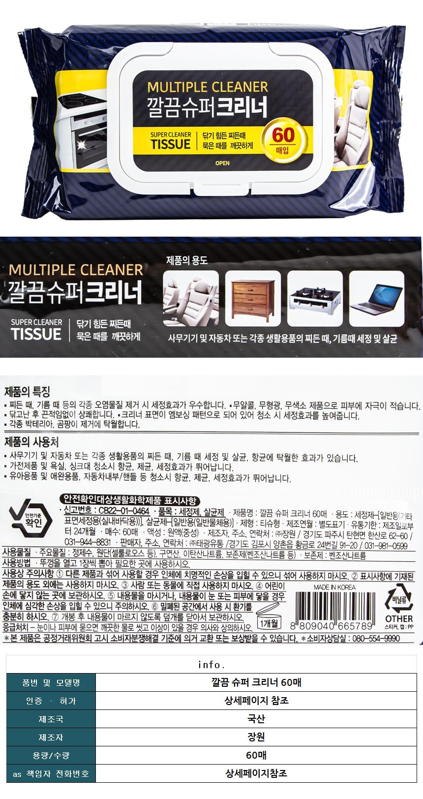 깔끔 슈퍼 크리너 60매