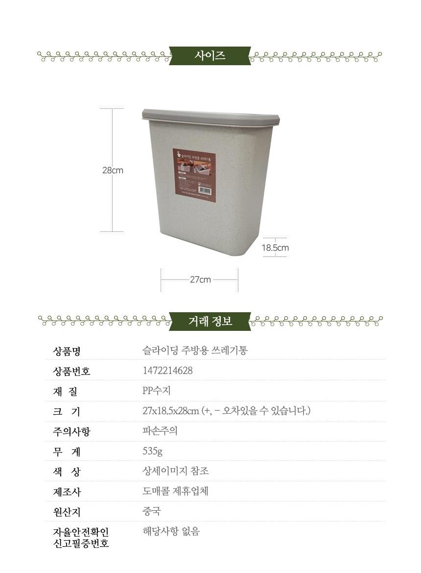 슬라이딩 뚜껑 주방 쓰레기통 생활용품 휴지통