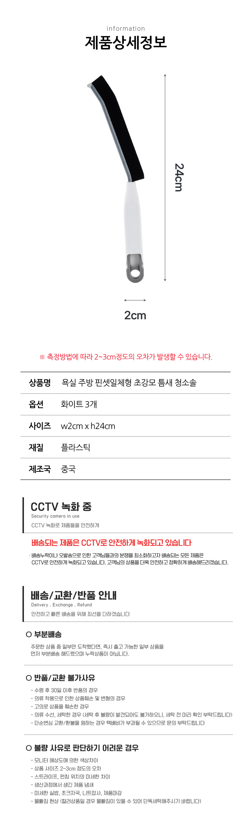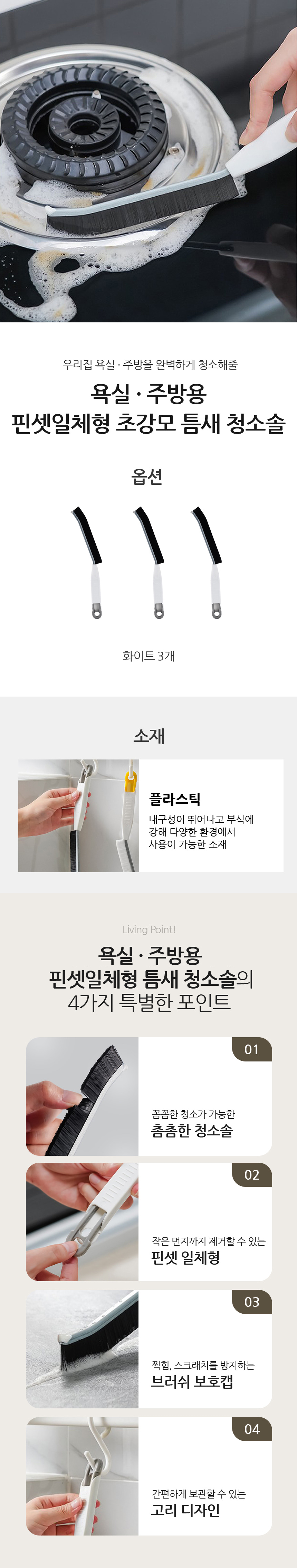화장실 욕실 바닥 창 문 틀 틈새 브러쉬 청소 솔 3P