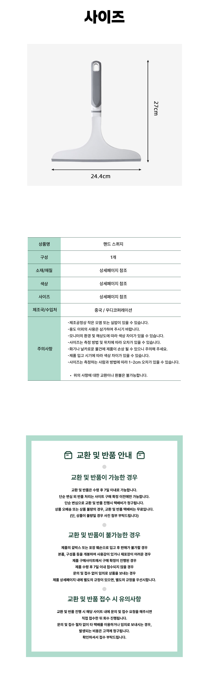 핸드 스퀴지 물끌개 욕실 벽 거울 물기제거