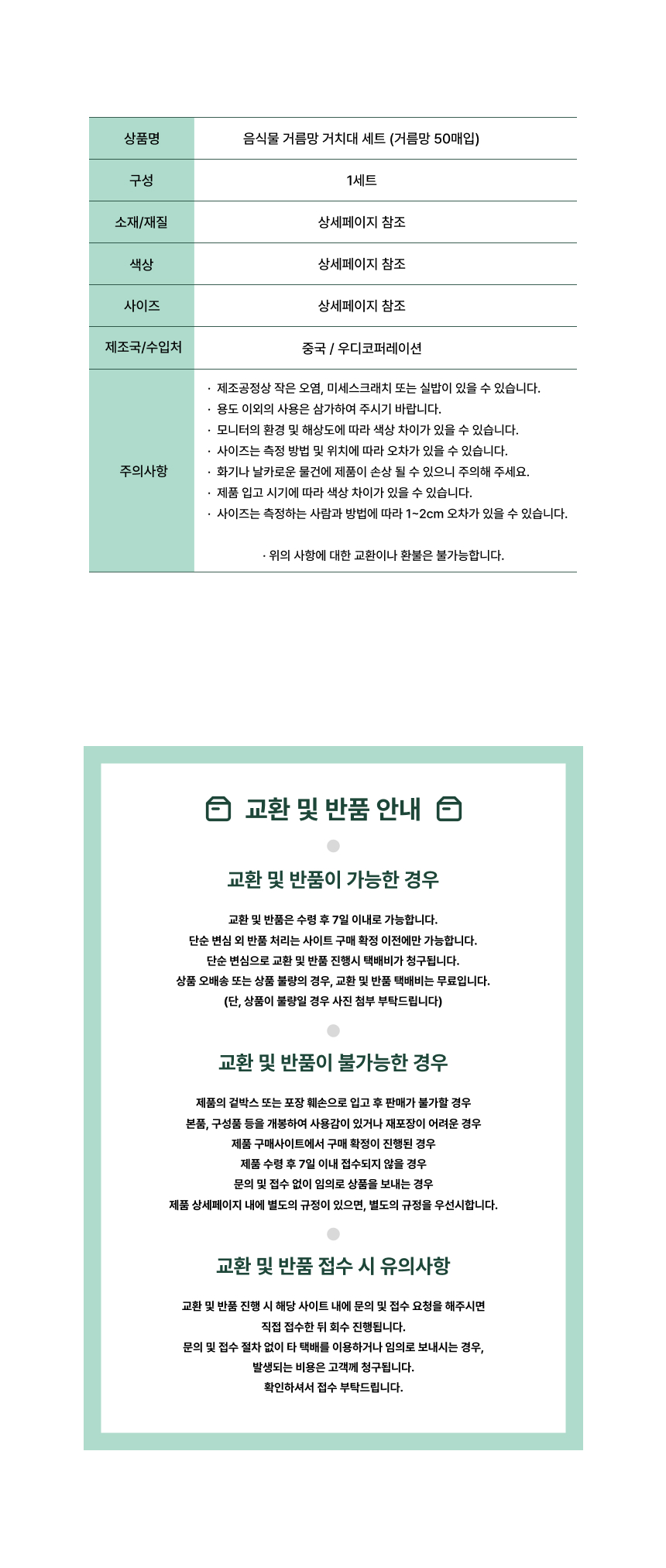 • 단순변심으로 인한 반품 시, 배송 완료 후 7일이 지나면 취소/반품 신청이 접수되지 않습니다.
