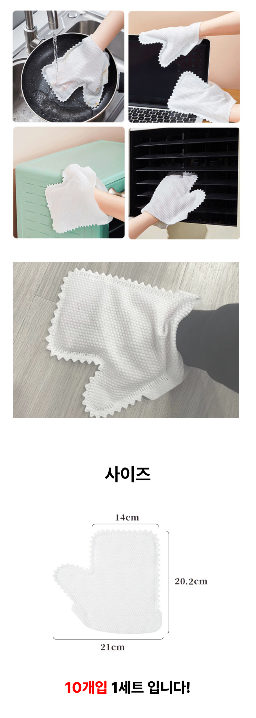 부직포 청소 장갑 부직포걸레 먼지청소장갑 (10개입 1세트)