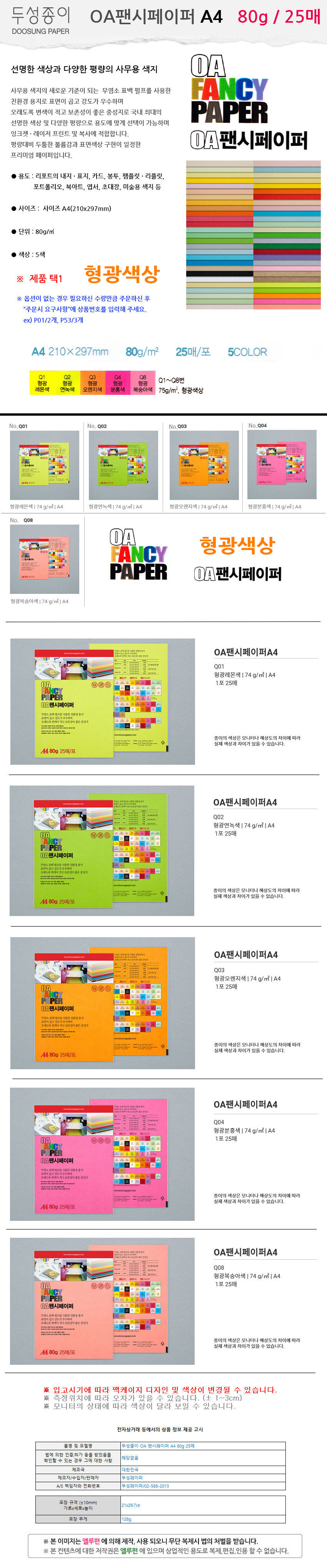 두성종이 OA 팬시페이퍼 형광 A4 80g 25매 택1