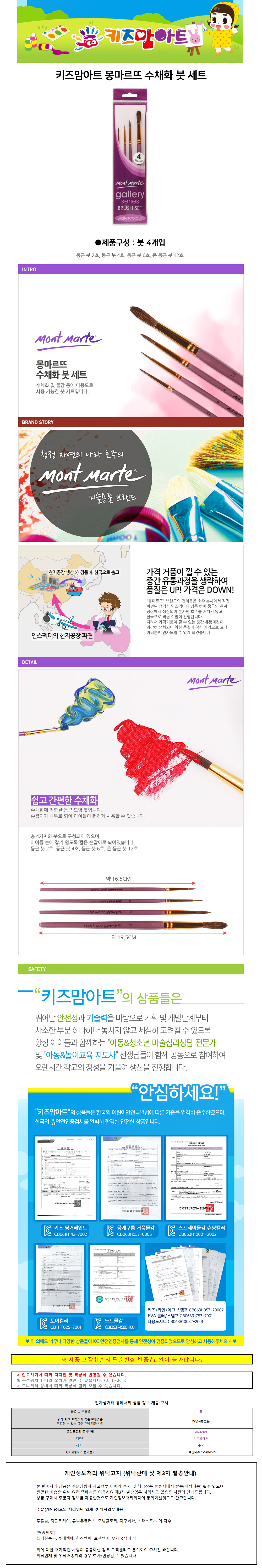 키즈맘아트 미술놀이 몽마르뜨 수채화 붓 세트