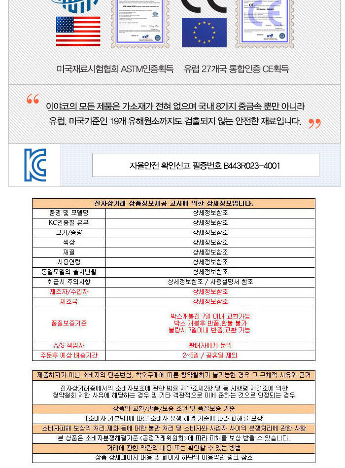 | 법에 의한 인증·허가 등의 사항 | 상세페이지 참조 |