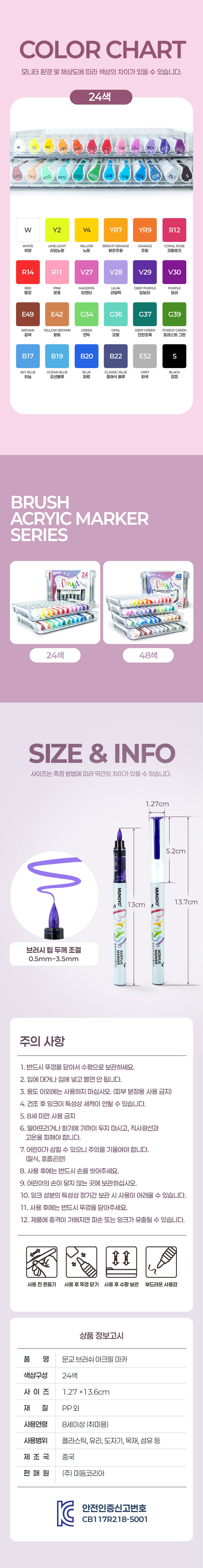 | 품명 및 모델명 | 아크릴마카 브러쉬팁 24색 캘리그라피 드로잉 |