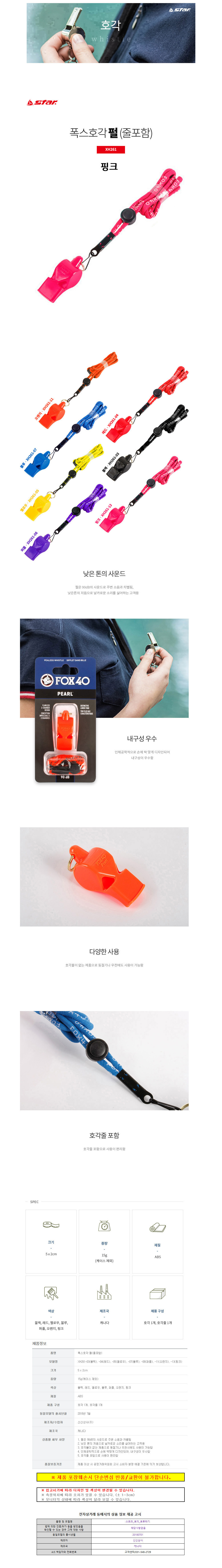 폭스 스포츠호각 호루라기 펄 (줄포함) (핑크) (XH261)