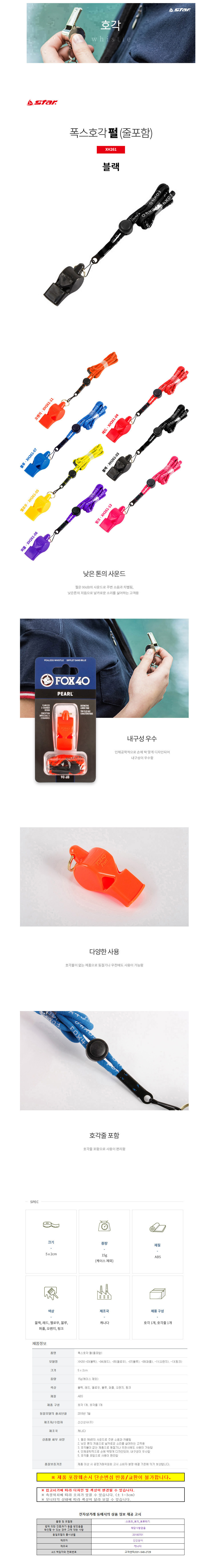 폭스 스포츠호각 호루라기 펄 (줄포함) (블랙) (XH261)