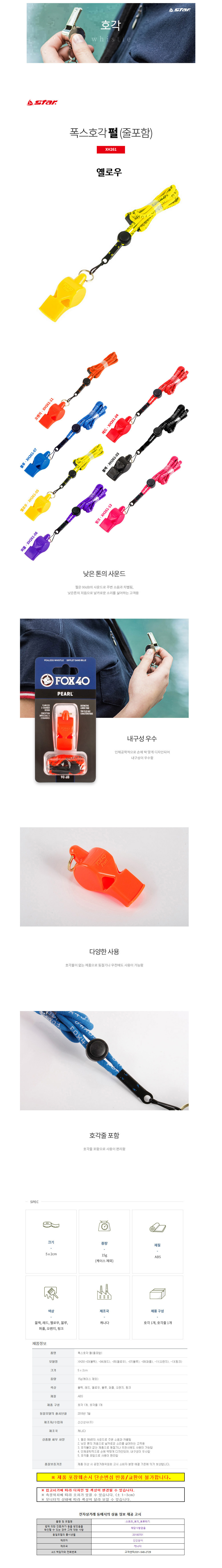 폭스 스포츠호각 호루라기 펄 (줄포함) (옐로우) (XH261)