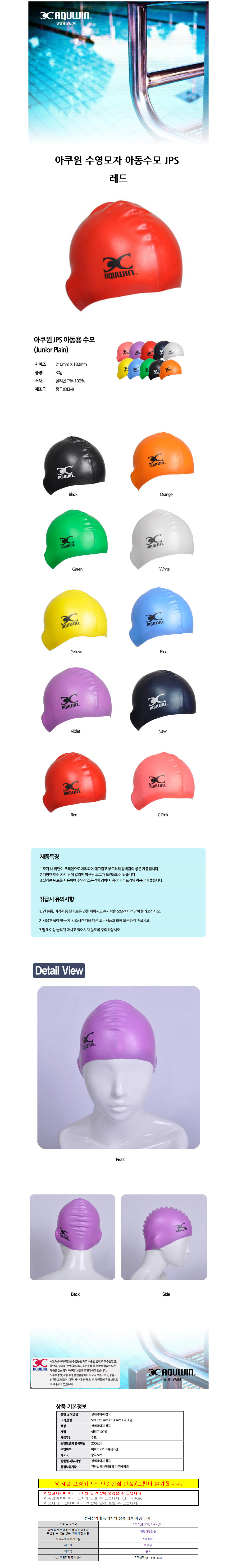 아쿠윈 수영모자 아동수모 JPS 레드 JPS01