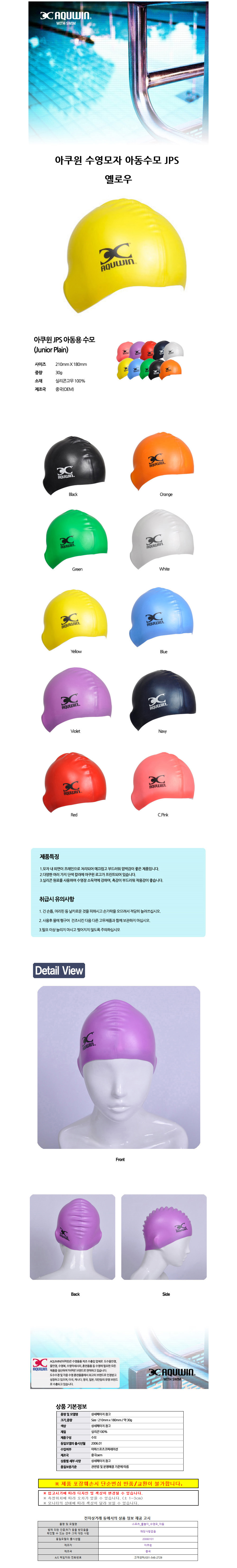아쿠윈 수영모자 아동수모 JPS 옐로우 JPS01