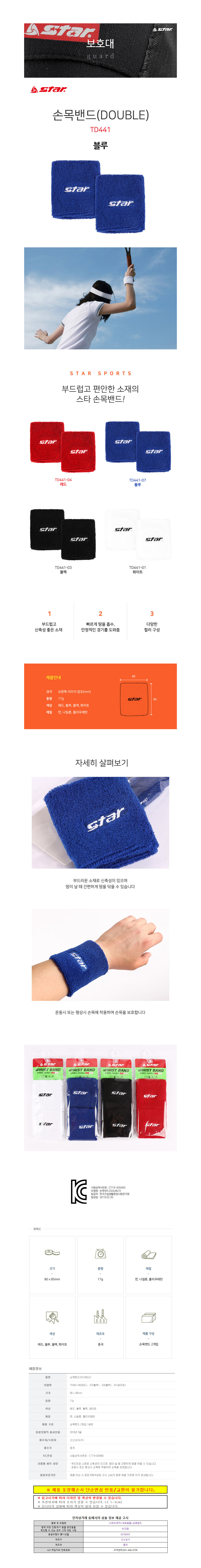 스타스포츠 손목밴드 DOUBLE 블루 1세트 2개입 TD441