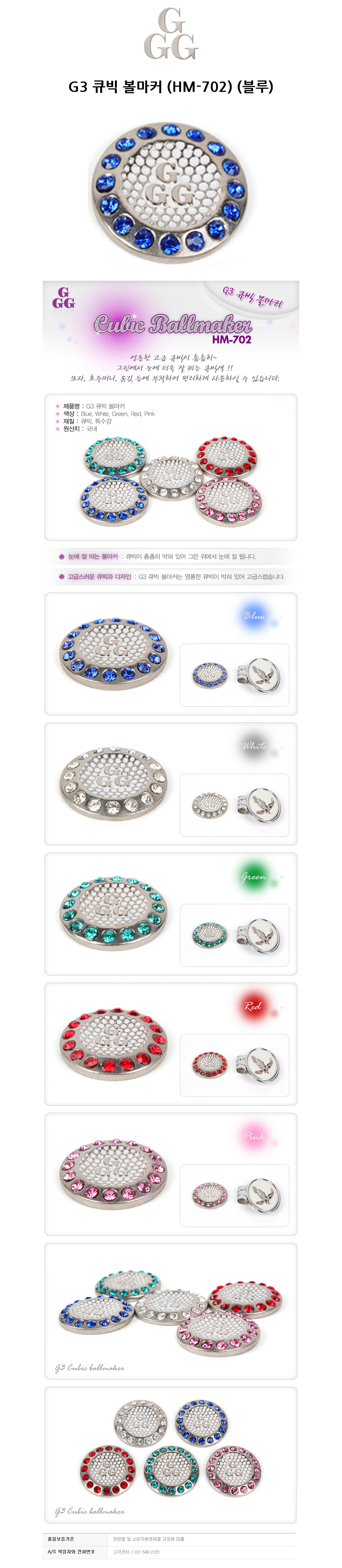 G3 골프 볼마커 큐빅 HM-702 블루