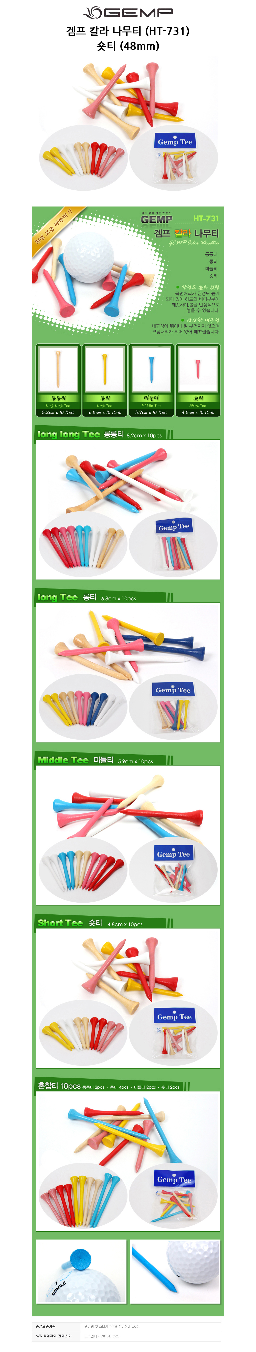 겜프 골프티 칼라 나무티 숏티 48mm HT-731
