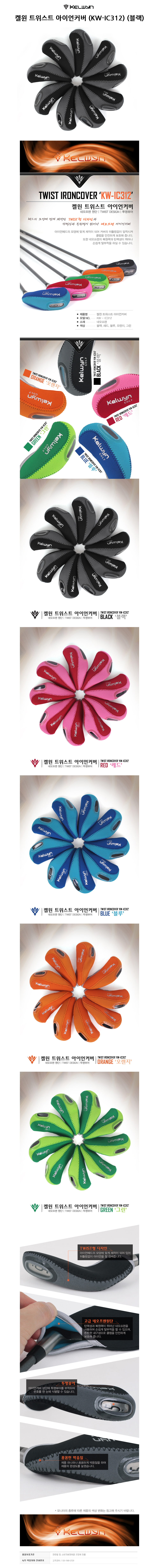 켈윈 골프채 아이언 헤드커버 트위스트 KW-IC312 블랙