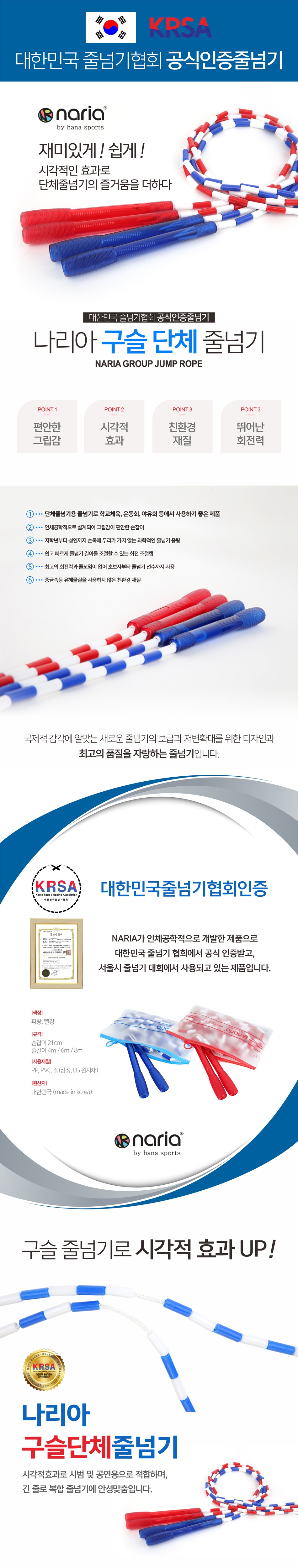(HS) 하나스포츠 향균손잡이 구슬 단체줄넘기(4M)랜덤