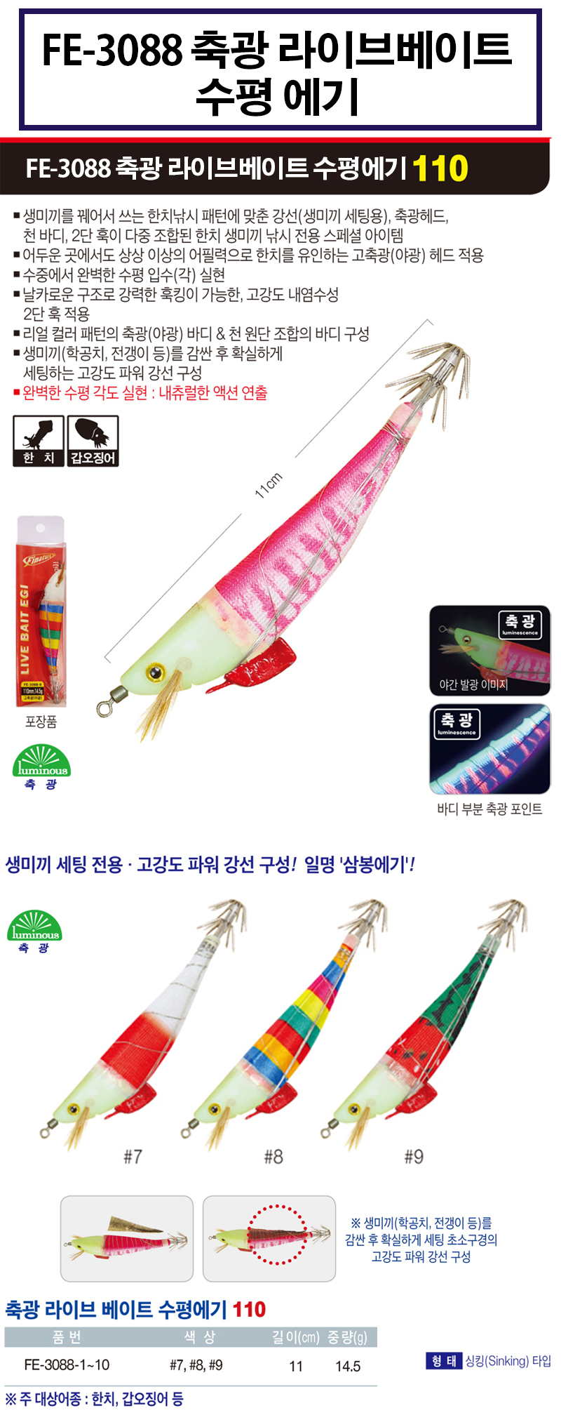 옵션01. FE-3088 축광 수평삼봉에기