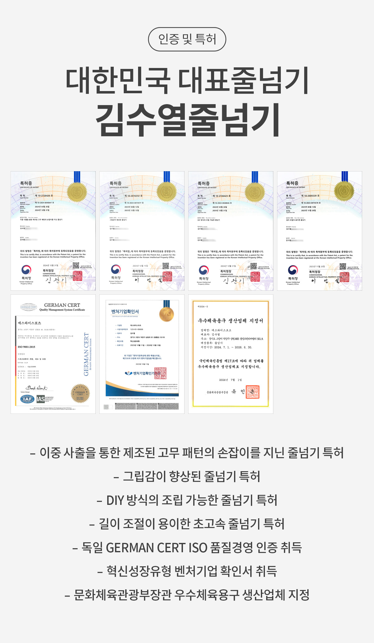 | 품명 및 모델명 | 김수열 줄넘기 스마트 명품줄넘기 SM100 |