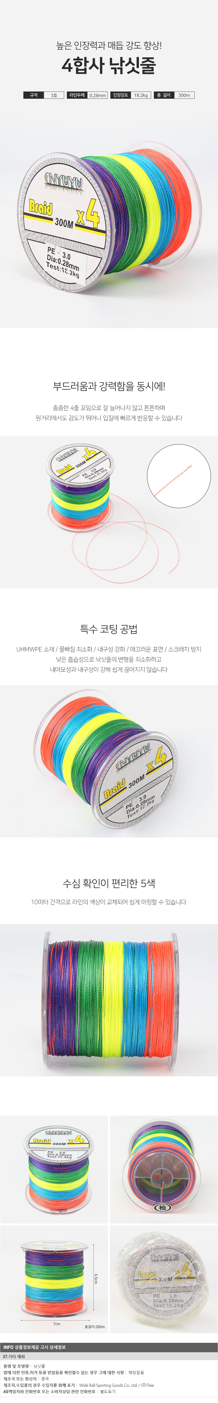 스트롱 4합사 낚싯줄 3호(300m) (5색)