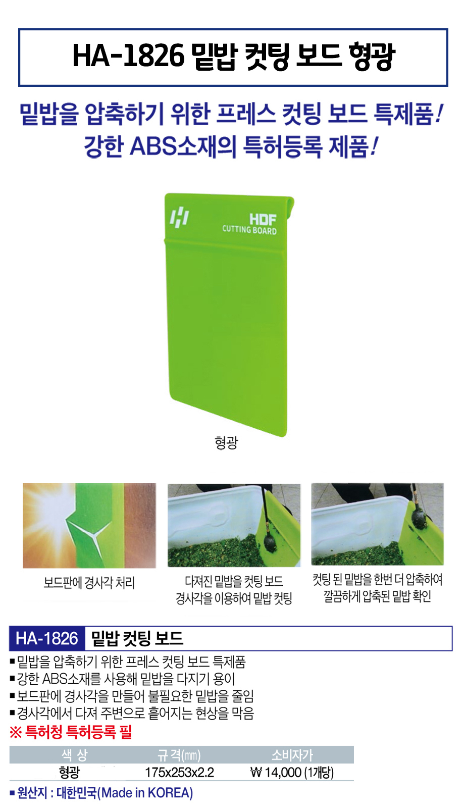 | 품명 및 모델명 | 품명:밑밥 컷팅 보드 / 모델명:HA-1826 |