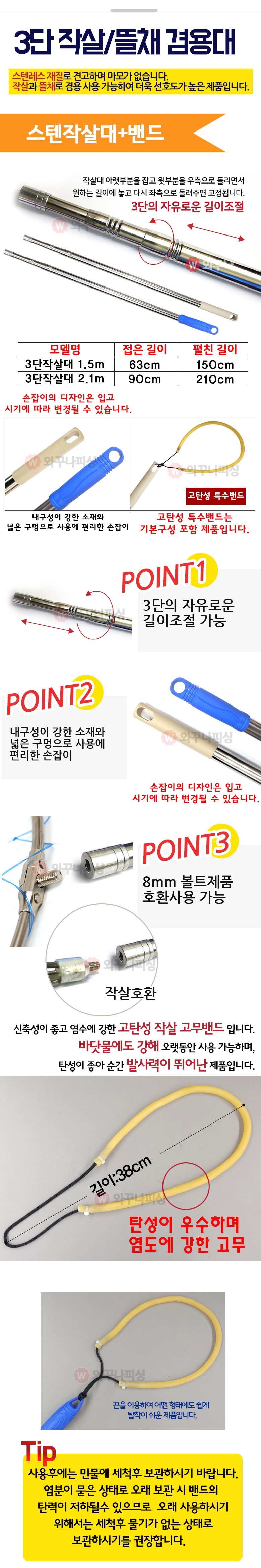 옵션01. 3단 스텐작살대 1.5m/2.1m +특수 고무밴드