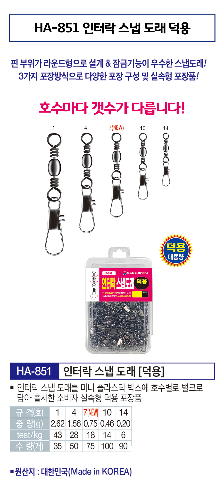 해동 원터치 인터락 스냅 도래 덕용 벌크