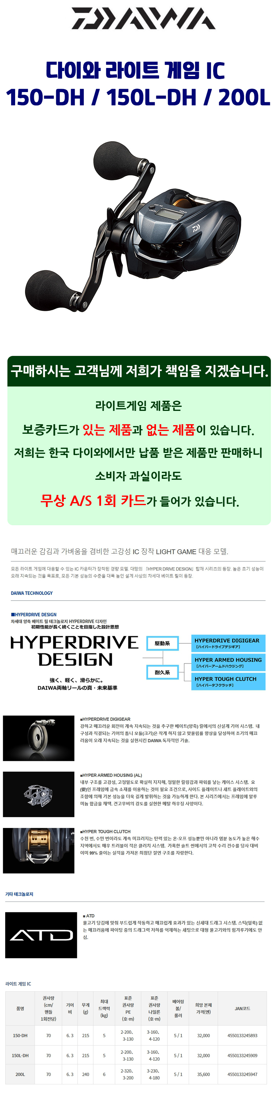 | 품명 및 모델명 | 품명:다이와 수심라이트게임 / 모델명:IC 200L |