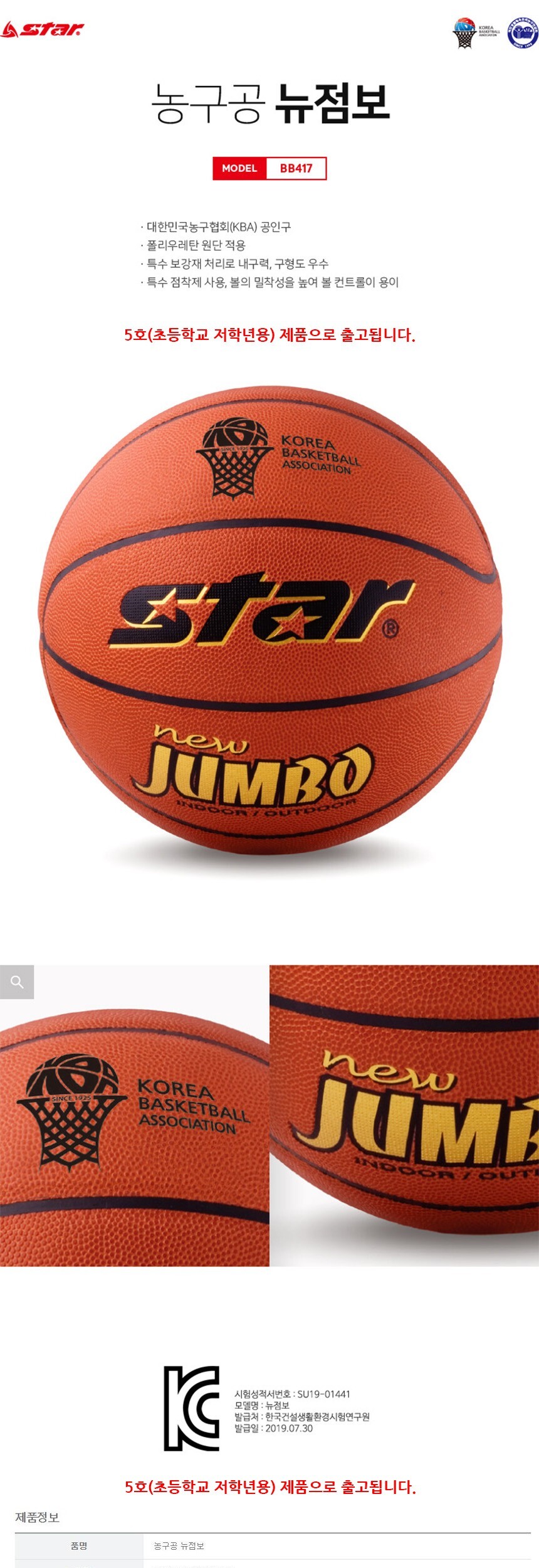 스타 뉴점보 농구공 5호 초등학교 저학년용