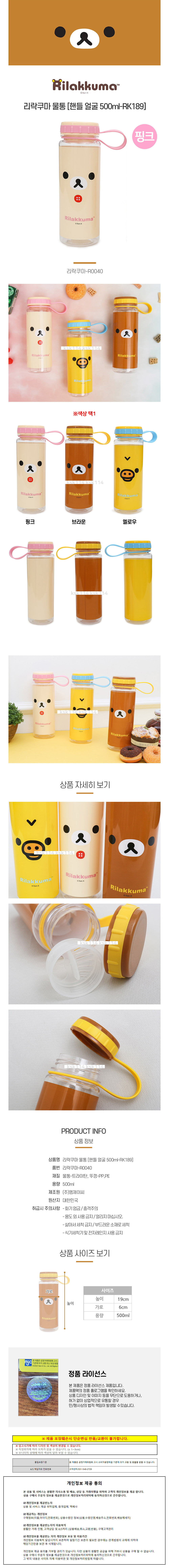 엠제이씨 물병 리락쿠마 핸들 얼굴 물통 (핑크)