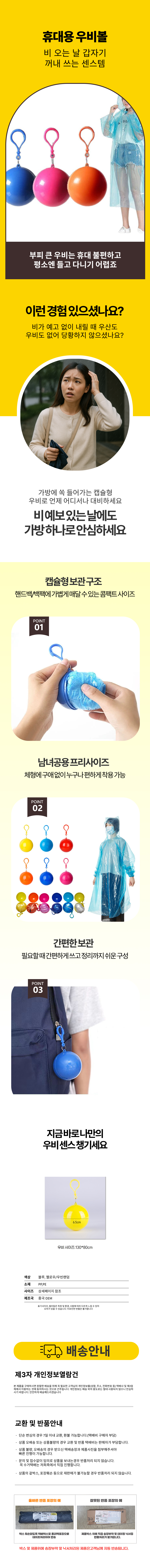 휴대용 우비볼 비옷 남여공용 우의 우비 캡슐 파스텔