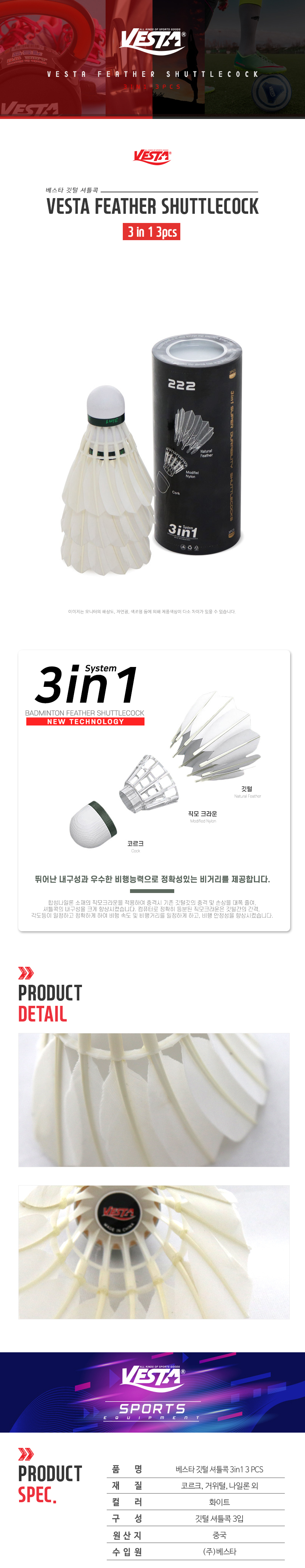 배드민턴공 거위털셔틀콕 3p