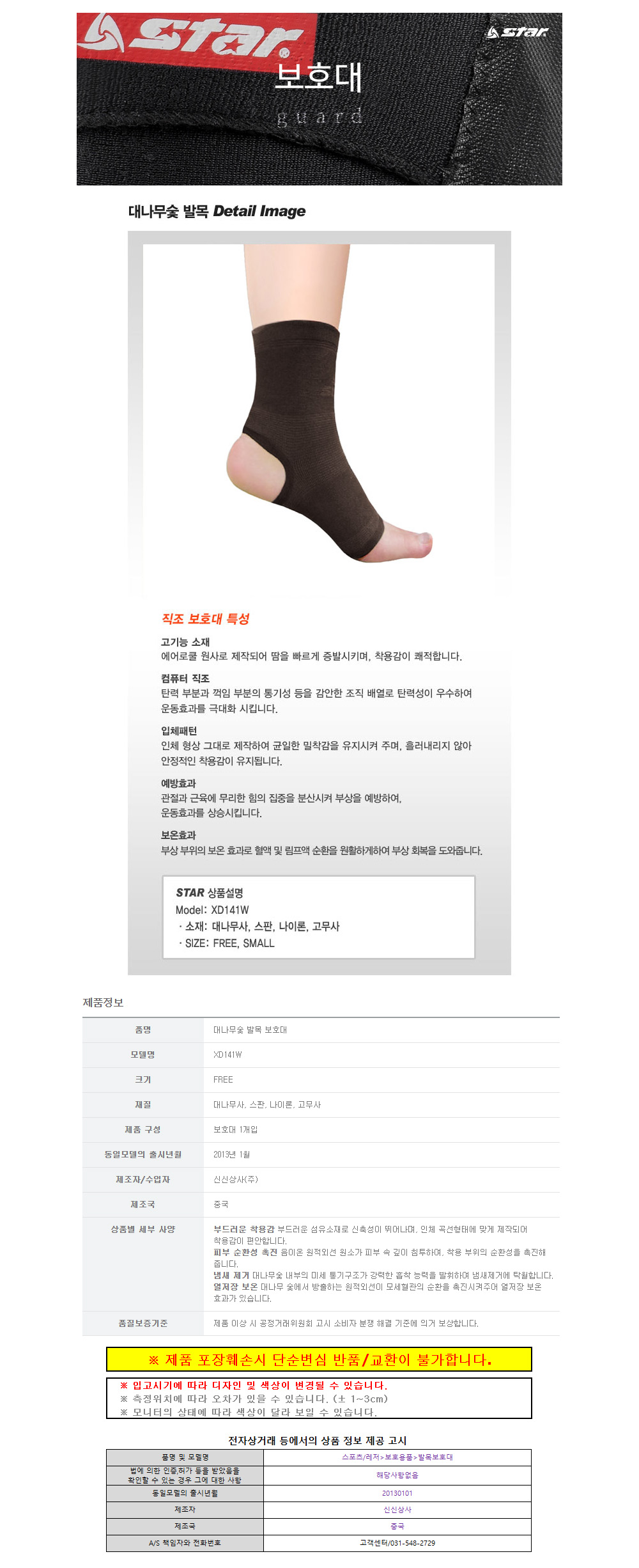 스타스포츠 보호용품 발목보호대 대나무숯 (FREE) (XD141W)