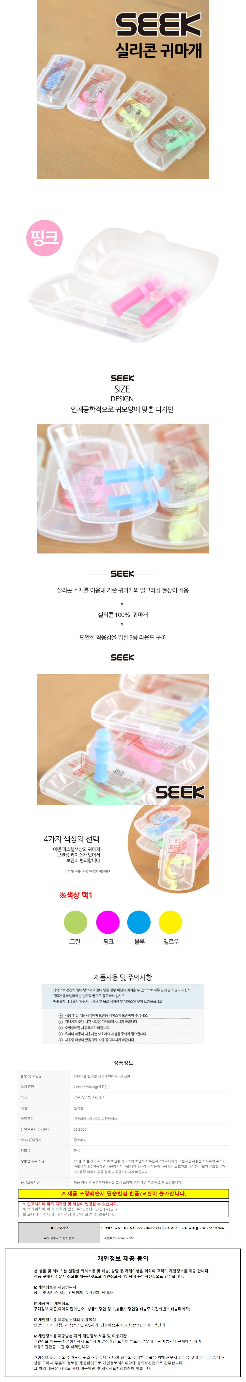 SEEK 3중 실리콘 귀마개 (핑크) (SK-Earplug01)