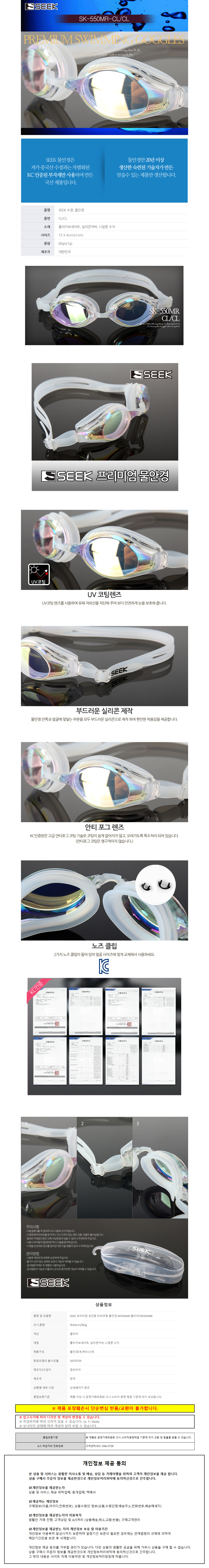 SEEK 프리미엄 성인용 미러코팅 물안경 (클리어) (SK550MRWH)