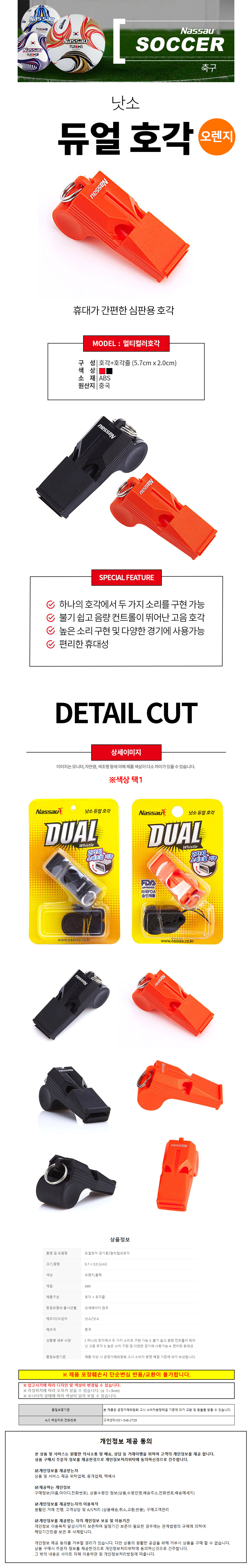 낫소 스포츠 듀얼호각 경기용 (오렌지) (멀티컬러호각) 호루라기 심판용품 경기 호각