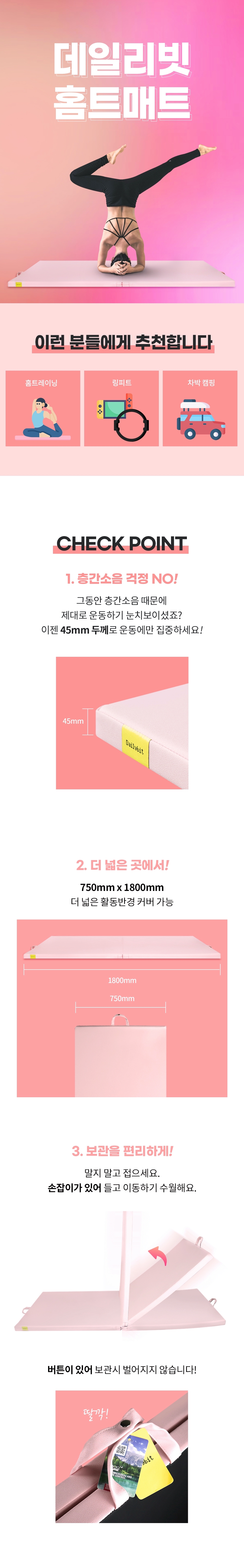 데일리빗 두꺼운 홈트매트 요가매트 링피트 홈트매트 층간소음운동매트