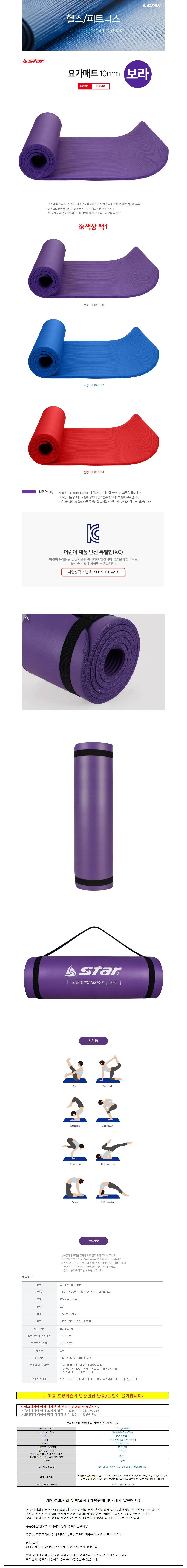 스타스포츠요가매트NBR10mm보라EU840-08