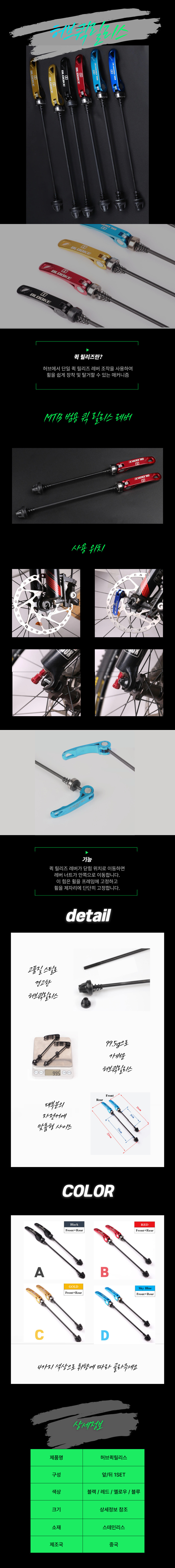 퀵릴리스 레버 허브심보 액슬 엠티비 세트
