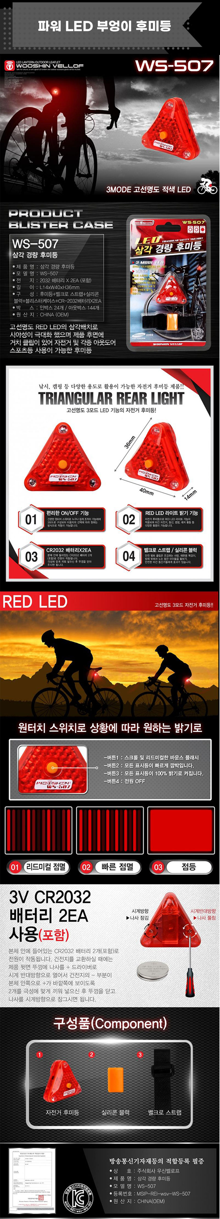 가벼운 삼각형 자전거 후미등 자전거악세사리 후레쉬